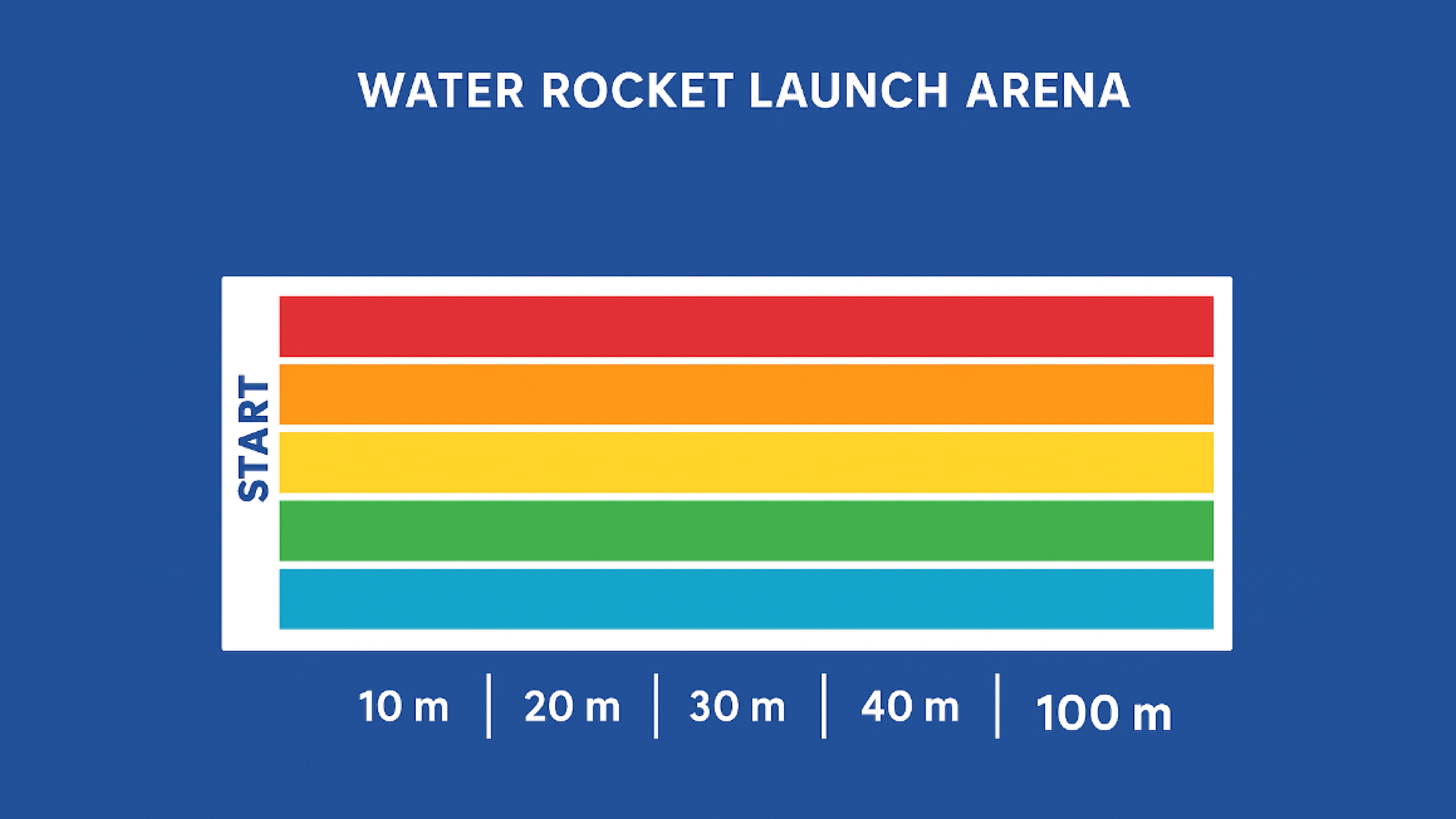 In this category, students should build a water-powered rocket made using plastic bottles and safe materials. The rocket should be able to launch using air pressure and travel the maximum horizontal distance inside the designated launch lane. The performance of the rocket will depend on its aerodynamics, design stability, water level, and launch angle. After filling water at the Water Fill Station, the rocket must be placed on the official launcher, and the team should aim for a stable and well-directed flight.